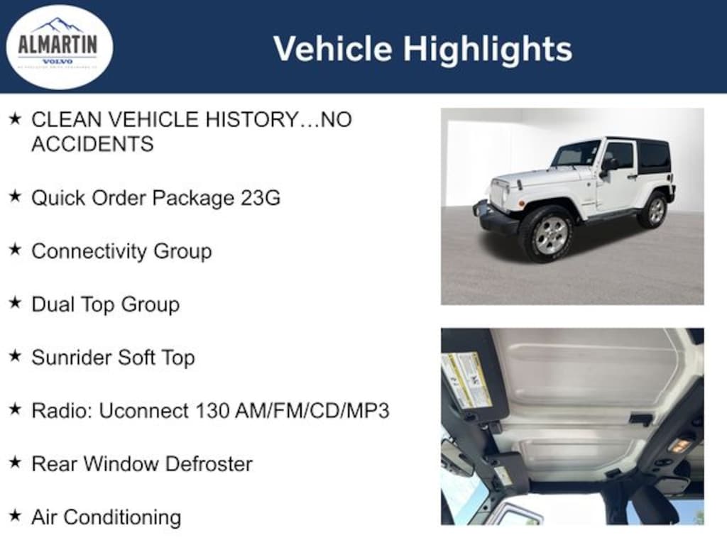 2015 Jeep Wrangler, CLEAN VEHICLE HISTORY...NO ACCIDENTS, 18" x 7.5" Polished Satin Carbon Wheels, 4-Wheel Disc Brakes, ABS brakes, Air Conditioning, Auto-dimming Rear-View mirror, Black 3-Piece Hard Top, Connectivity Group, Delete Sunrider Soft Top, Dual front impact airbags, Dual Top Group, Electronic Stability Control, Freedom Panel Storage Bag, Front anti-roll bar, Fully automatic headlights, Heated door mirrors, Heavy Duty Suspension w/Gas Shocks, Illuminated entry, Integrated roll-over protection, Leather Wrapped Steering Wheel, Low tire pressure warning, Occupant sensing airbag, Power door mirrors, Power steering, Premium Black Sunrider Soft Top, Quick Order Package 23G, Radio: Uconnect 130 AM/FM/CD/MP3, Rear anti-roll bar, Rear Window Defroster, Rear Window Wiper/Washer, Remote keyless entry, Sunrider Soft Top, Tire Pressure Monitoring Display, Traction control, Vehicle Information Center.